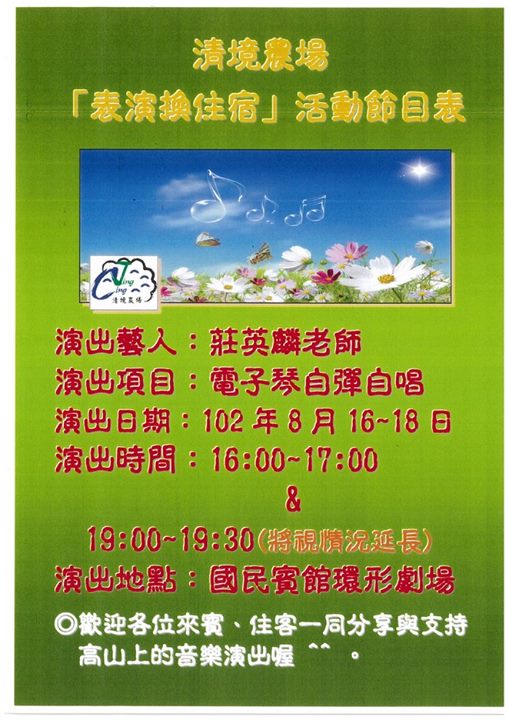 清境旅遊資訊網--清境農場電子琴彈唱表演(8/16-18)